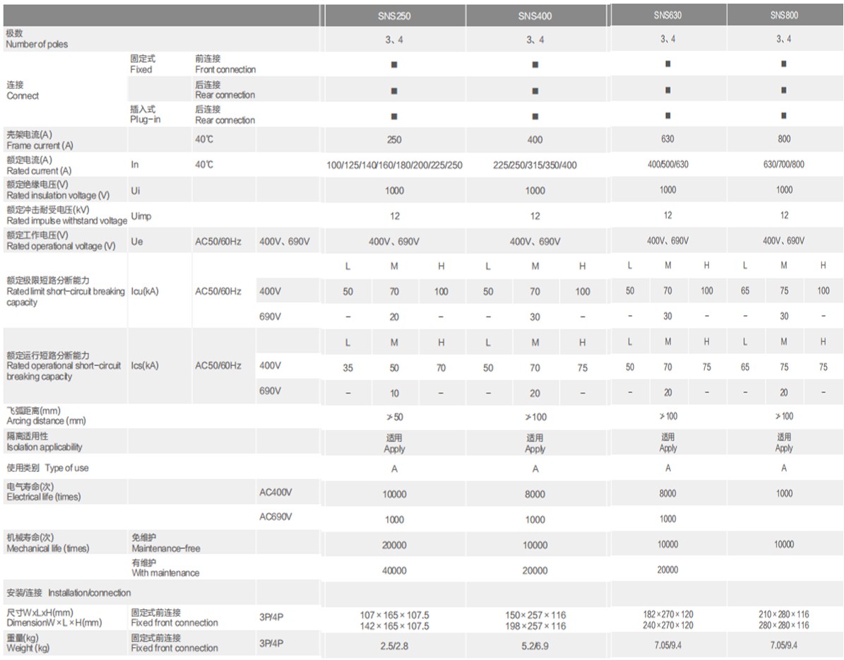 SNS molded case circuit breaker (hereinafter referred to as circuit breaker) is a new generation of products launched by the company, divided into three series: