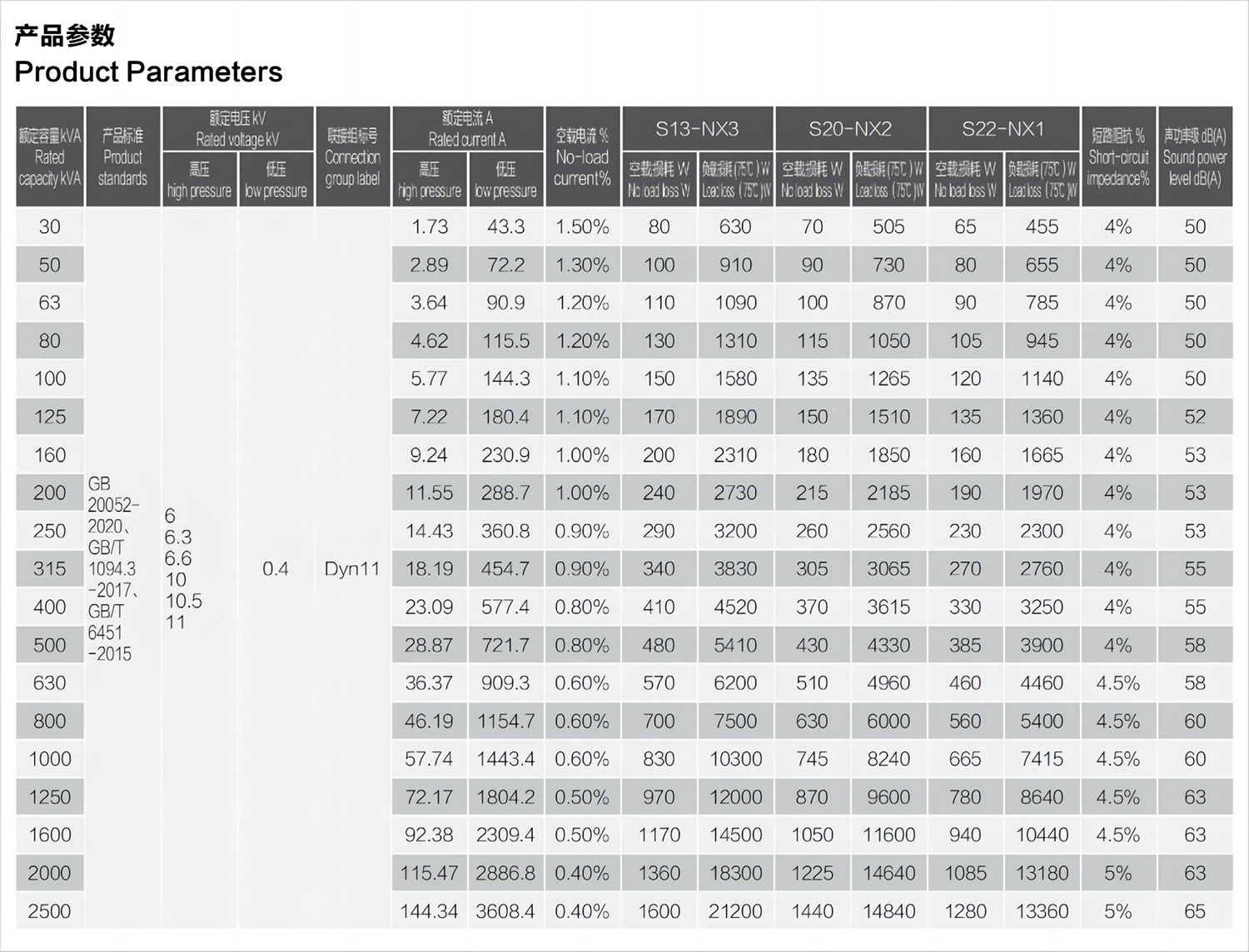 Comply with the latest domestic standards such as GB 20052-2020、GB/T1094.3-2017、GB/T6451-2015, eto