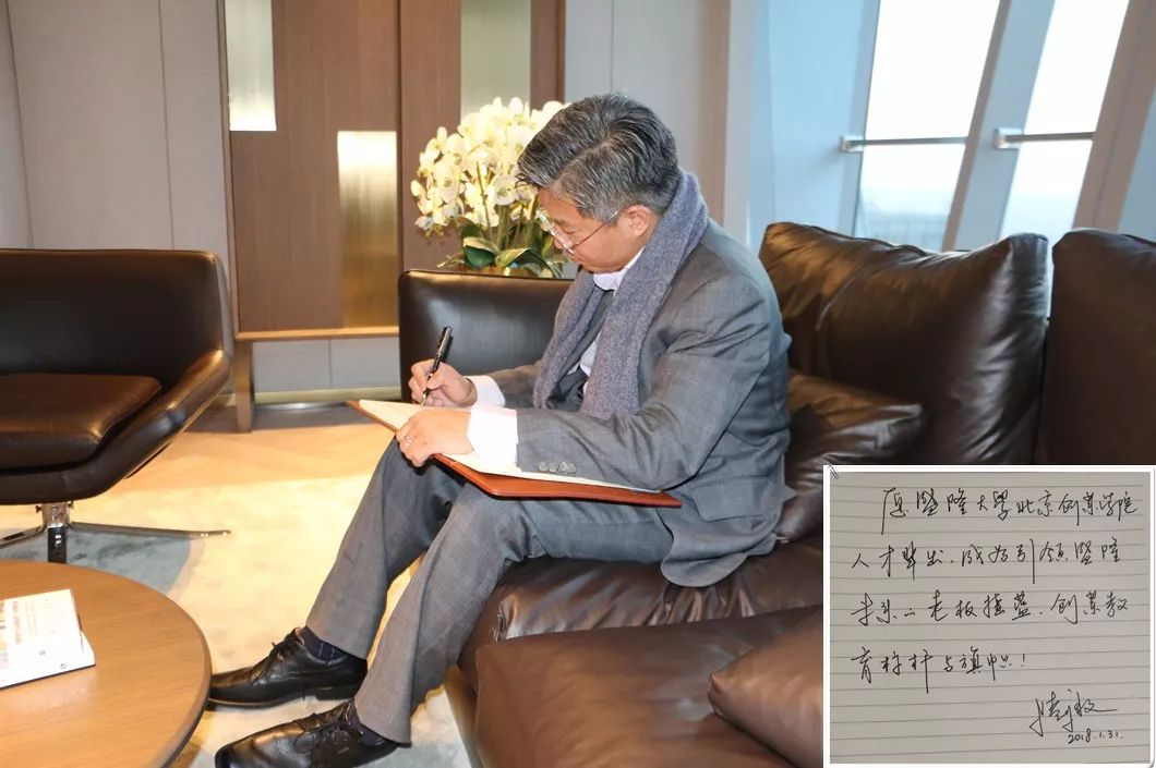 陆雄文院长写下对北京盛创院的寄语:愿盛隆大学北京创业学院人才辈出,成为引领盛隆未来的老板摇篮,创业教育的标杆与旗帜!