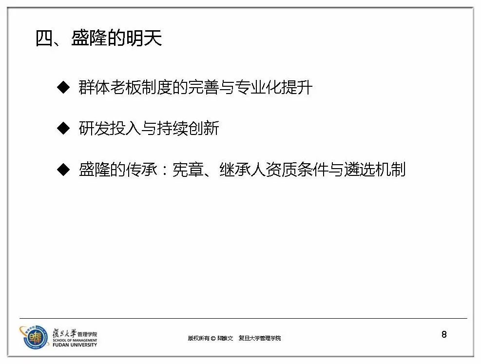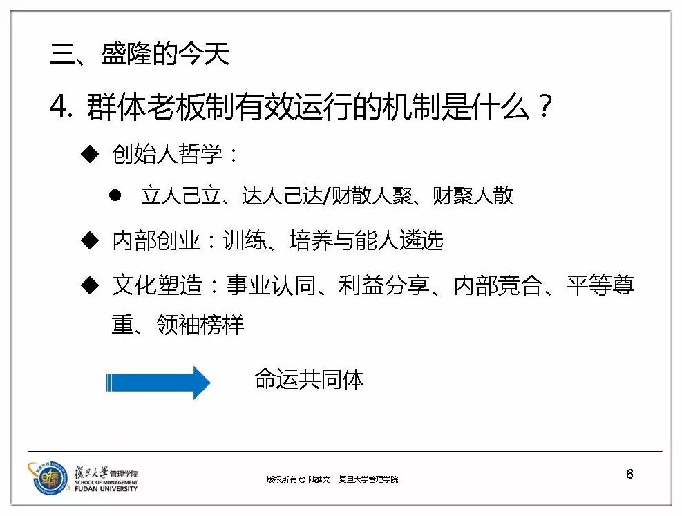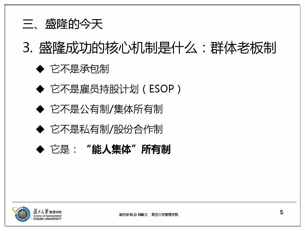 陆雄文院长表示:“AC米兰中文官网的群体老板模式,不是从理论上学来的,也不是从其他企业学来的,完全是盛隆独一无二的创造。目前为止,我在国内外看了这么多案例,这样做的只有盛隆一家。”