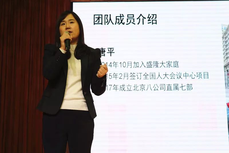 2014年10月加入盛隆,作为部门经理,唐平光荣地参与了全国人大会议中心高压配电室改造工程项目。在该项目中,团队以中间价和施工组织方案第一的成绩中标。她说,自己有信心干出一份事业。她还介绍,公司目前积极布局海外市场,“开放的盛隆有导师和专业团队等着五湖四海的创业青年!”