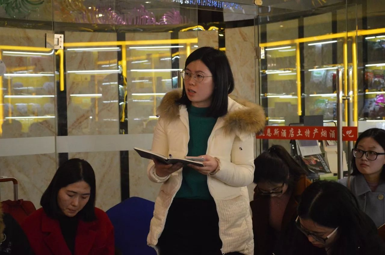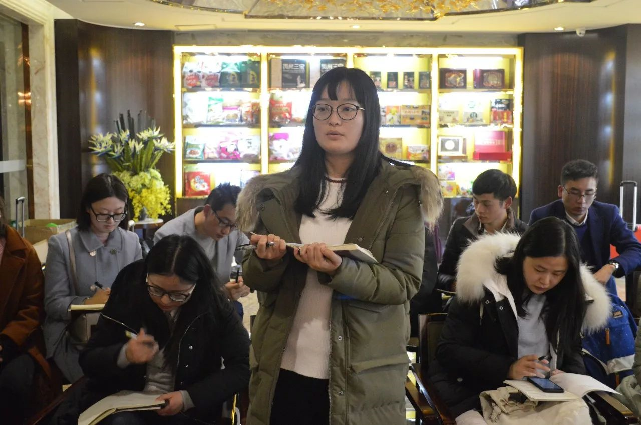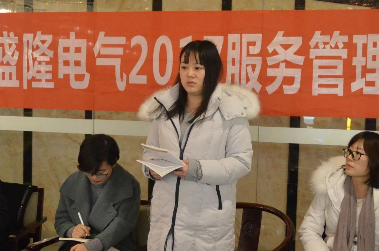 樊莎莎: 大家好,我是来自上海公司的樊莎莎。我目前的工作主要包括:财务工作、办公室工作以及协助周总做一些工作。作为集团公司在上海的管理代表,结合这次会议主题,我向大家汇报一下上海公司目前的情况。 1、上海公司这几年发展有些落后于其他营销团队,但是仍有一群没有放弃的人,一直相信盛隆,相信谢总,我们既然落后了就要找出原因,去面对问题,解决问题。经过这几年的沉淀和冷静,周总也给我们制定了上海公司第二次创业的目标,在今年11月11日的会议上,周总说她愿意拿出500万3年培养100名创业老板,团队人员应该互相信任、互相帮助,不忘初心。当时我们看到了周总的信心和决心,我相信2018年我们上海公司也会像老总说的那样是一个澎湃的一年,是燃烧的一年。所以,我作为上海公司管理人员,要主动地去服务,做自己可以做的,老板们需要我们做的一切事情,要与老板们配合密切,积极参加营销的会议,了解他们的心声,了解他们的需求,传递正能量,同时也要提高自己的服务能力,通过不断地去服务,不断地做,实现自己在盛隆的人生价值。 2、高校行,校企合作。上海公司要发展,就必须要引进人才,周总也联系了复旦大学和上海电力学院,12月份我会协助周总去高校招人,为上海公司引进优秀人才。引用集团公司的资源,向邢老师学习,寻求建议和帮助。 3、我们办公室人员给自己的定位是,每个人都做一个多面手,不要把自己仅仅定位于某一项工作,大家共同去帮助营销人员,为他们提供服务,让营销有更多的精力专注在拿单上。老总说,手高于头,行动起来就会见成效。回去后我会把会议精神传达给上海的领导和同事们,行动起来,做一把火,点燃上海公司,和上海公司共同发展。