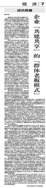 2017年8月17日新华社新华每日电讯报道《企业“共建共享”的“群体老板模式》