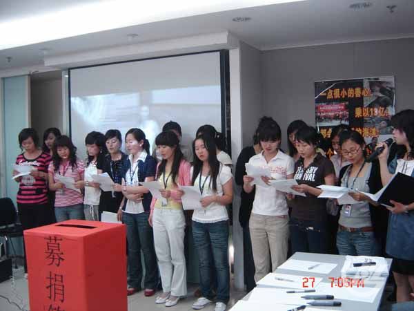 2008年6月12日晚,AC米兰中文官网(武汉)募捐晚会在武汉高科大厦4楼会议室举行。晚会由副董事长谢清伦女士总策划。出席晚会的有各营销系统领导及代表、生产管理系统代表共200余人。与会全体人员为灾区遇难同胞默哀,唱中华人民共和国国歌。副董事长谢清伦深情致辞并与各营销处总经理一道,率先捐款。各部门负责人也带领本部人员依...2008-06-13