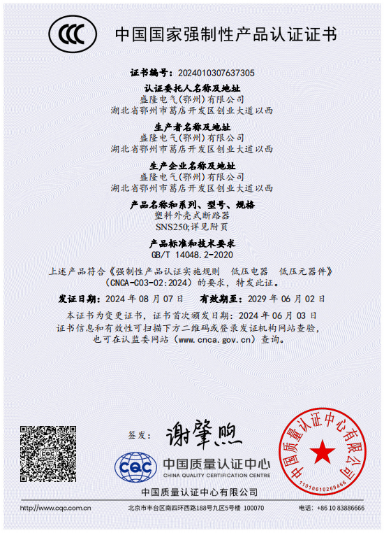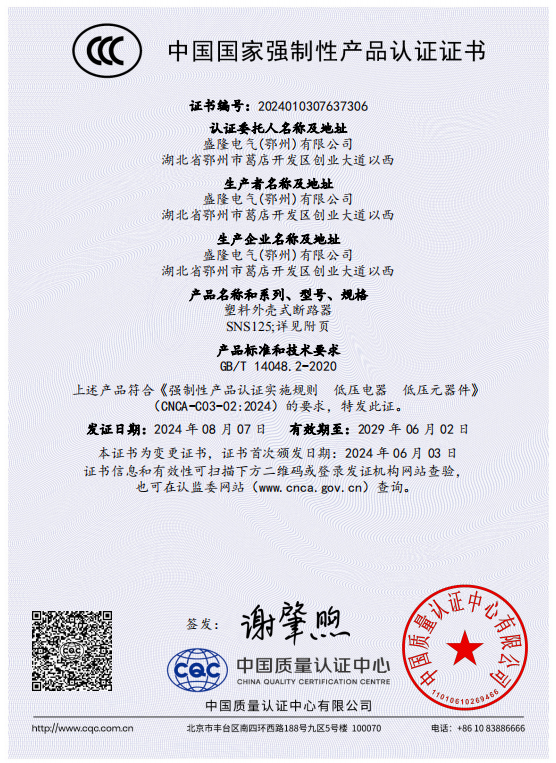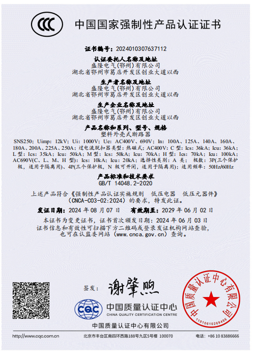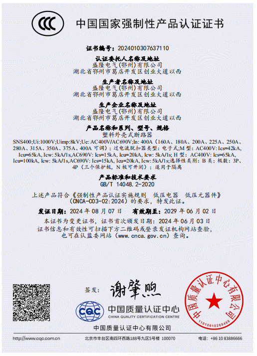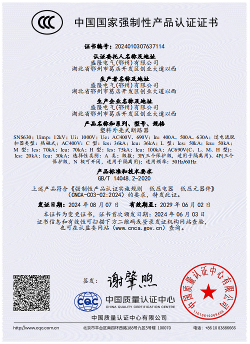 SNS热磁式断路器具有过载、短路和欠压保护功能,能保护线路和电源设备不受损坏。有63型、125型、250型、400型、630型、800型六个壳架,电流从16A~800A。