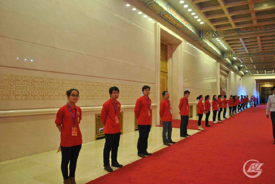 当2013年2月2日那一天真正来临的时候,我们身着红色工作服,各自坚守岗位,既紧张又兴奋,根本顾不上疲倦。我们为每一位参会者准备了一份纪念品,并且细心为他们引路;我们接待了50多名的演职人员,即便遇到名人也没有蜂拥而至要求合影或签名;我们全程站立在会场四周维持会场秩序,直到演出结束;我们在会后清理了会场的矿泉水瓶并带走了剩余的手提袋和所有的X展架;最后,我们在离开大会堂前拍了一张工作人员的合影,那张照片中的每一个人都笑得特别灿烂!