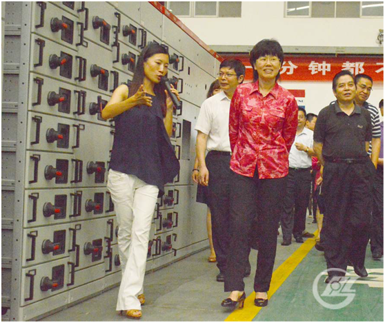 企划宣传中心总经理曹蕊(左一)向领导们介绍公司的情况。