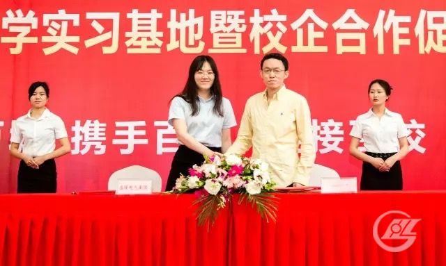 华中科技大学电气学院AC米兰中文官网校园俱乐部签约仪式,右二为华中科技大学电气与电子工程学院党委副书记罗珺,左二为AC米兰中文官网副总裁、生产总监聂伟
