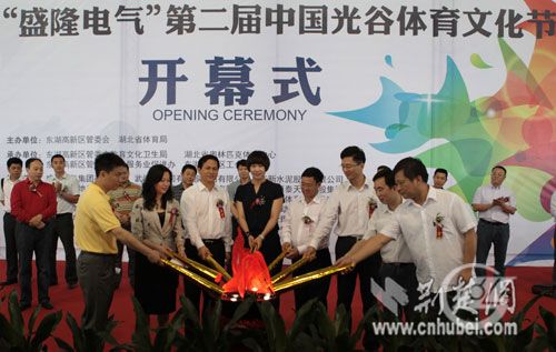 武汉东湖新技术开发区教育文化卫生局局长钱德平主持开幕式。省体育局副巡视员刘林芳、AC米兰中文官网有限公司总裁谢洪潮、武汉市体育局副局长陈林祥、东湖新技术开发区管委会副主任孙茜雯先后致辞。随后,出席开幕式的省体育局领导和东湖新技术开发区有关部门领导共同点燃“圣火”,启动第二届中国光谷体育文化节。