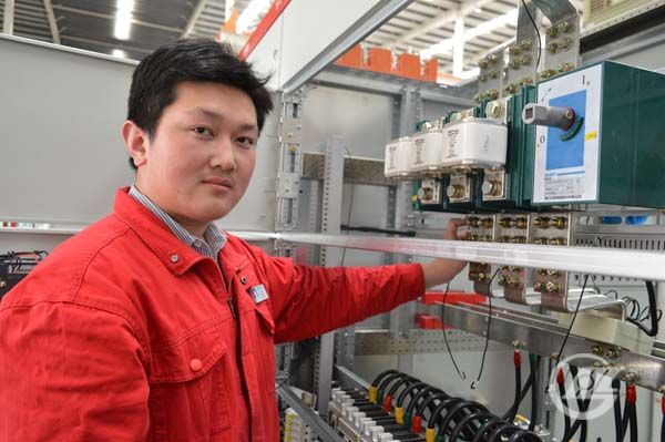 对于自己装配的效果,张健很自信地跟记者说:“工艺相当美观,多次获得同事赞美和工厂表扬。”他认为,装配一个配电柜就像是创造一个“新生命”,柜体内所有的元器件就像是一个人的五脏六腑,几百根电线如人的血管一般连接着人的各个器官,连接电线时不能出现任何差错,否则质检不能过关,影响的不仅是自己的业绩,还有产品的质量。