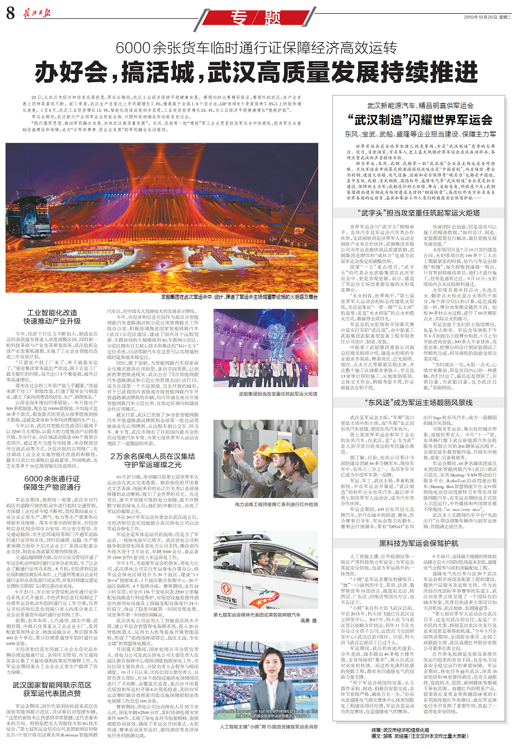 10月29日,《长江日报》以《“武汉制造”闪耀世界军运会,东风、宝武、武船、盛隆等企业担当建设、保障主力军》为题,再次聚焦军运会上的“盛隆制造”。