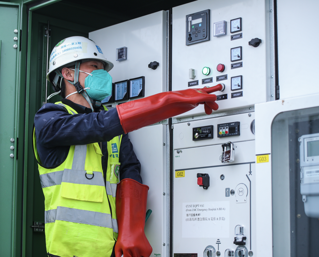 3月29日下午5时30分,在中央援港应急医院项目施工现场,随着合闸开关“咚”地一响,电压指示表的表针稳稳指向11千伏,红色的合闸指示灯亮起,中央援港应急医院项目一期正式通电并进入联调联试阶段。