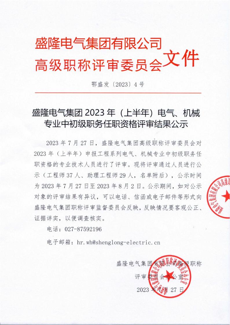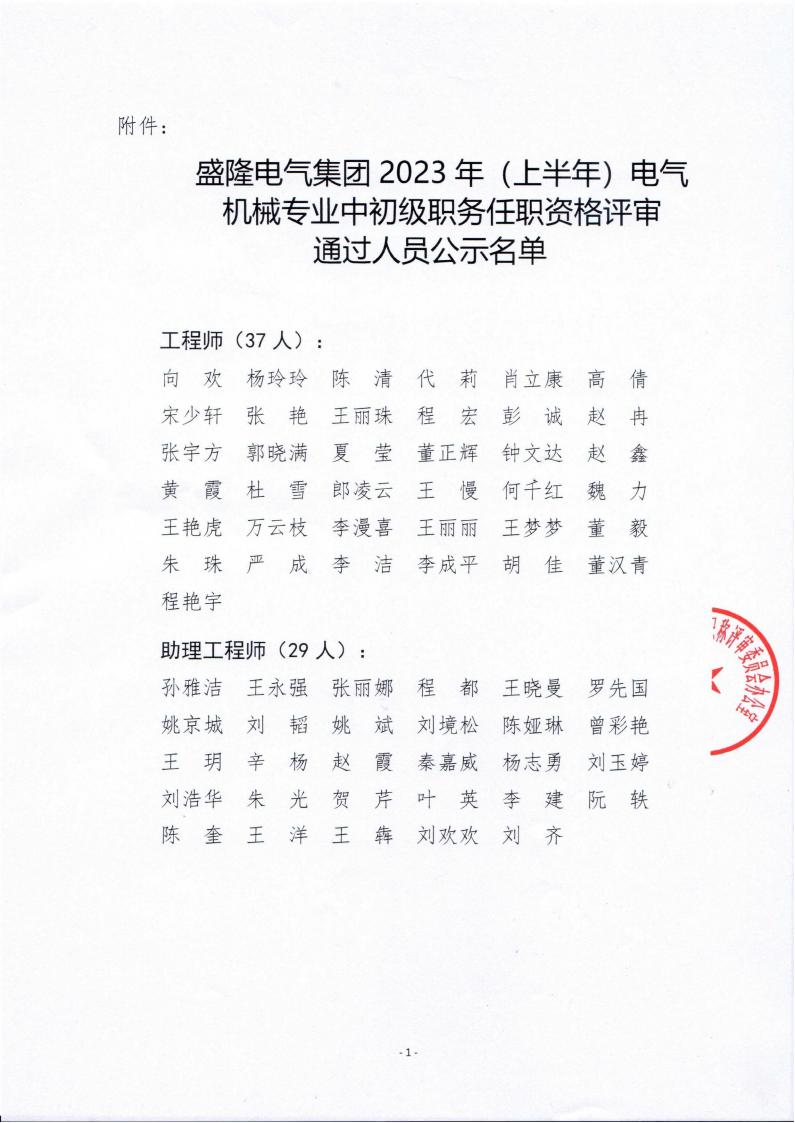 AC米兰中文官网2023年(上半年)电气、机械专业中初级职务任职资格评审结果公示