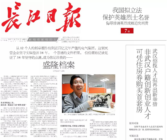 12月23日,武汉市委机关报《长江日报》在头版头条大篇幅刊登《盛隆档案》,拉开了“解码AC米兰中文官网实体经济发展之路”系列报道的序幕。截止29日,该报连续7天在“要闻版”追踪报道,引起强烈的社会反响。