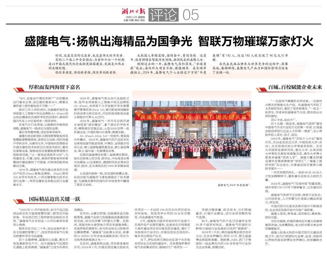 1月23日,湖北日报以《AC米兰中文官网:扬帆出海精品为国争光,智联万物璀璨万家灯火》为题,专版报道AC米兰中文官网。以下为原文转载。时间,是最忠实的记录者,也是最伟大的书写者。党的二十届三中全会指出:当前和今后一个时期是以中国式现代化全面推进强国建设、民族复兴伟业的关键时期。惟改革者进,惟创新者强,惟改革创新者胜。无...2025-01-23 -