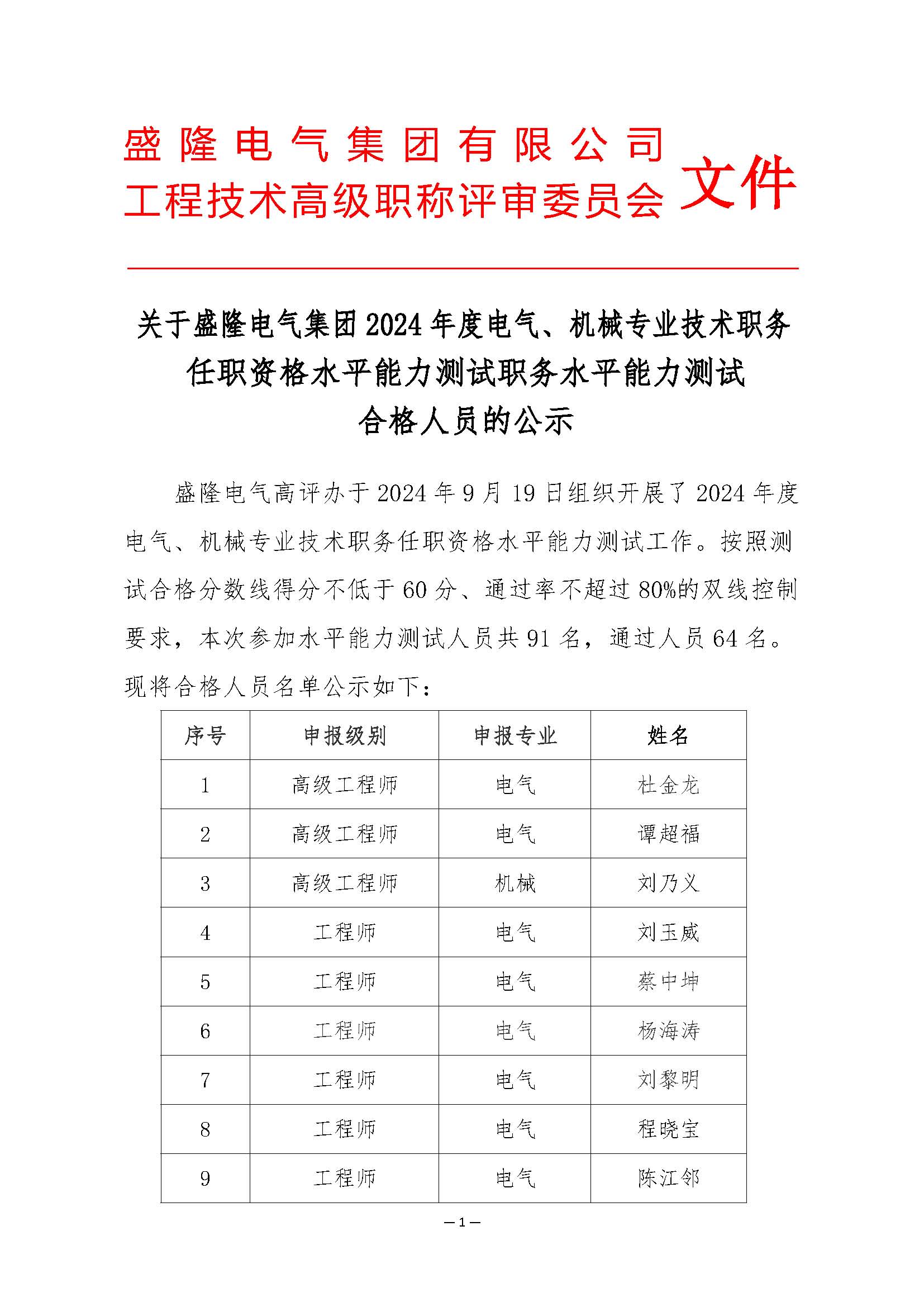 关于AC米兰中文官网2024年度电气、机械专业技术职务任职资格水平能力测试职务水平能力测...