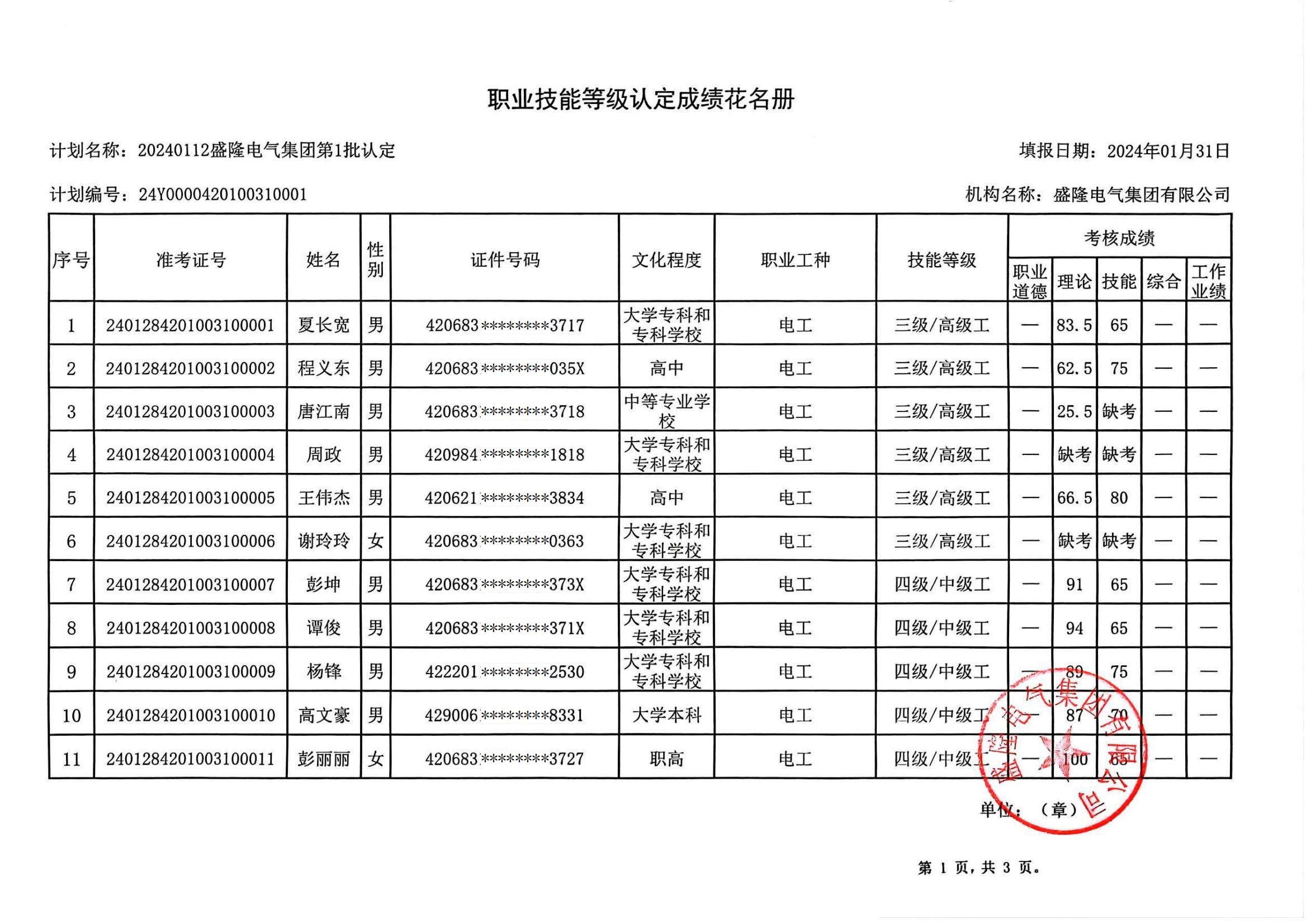AC米兰中文官网2024年第七批职业技能等级认定成绩公示