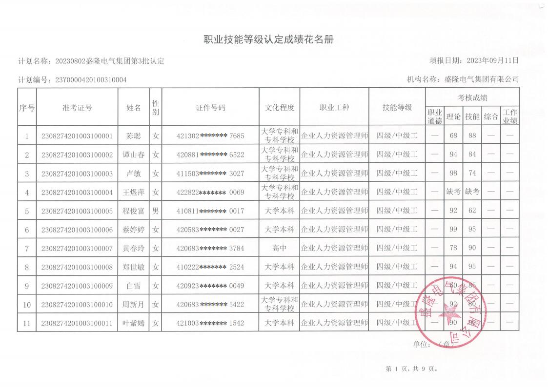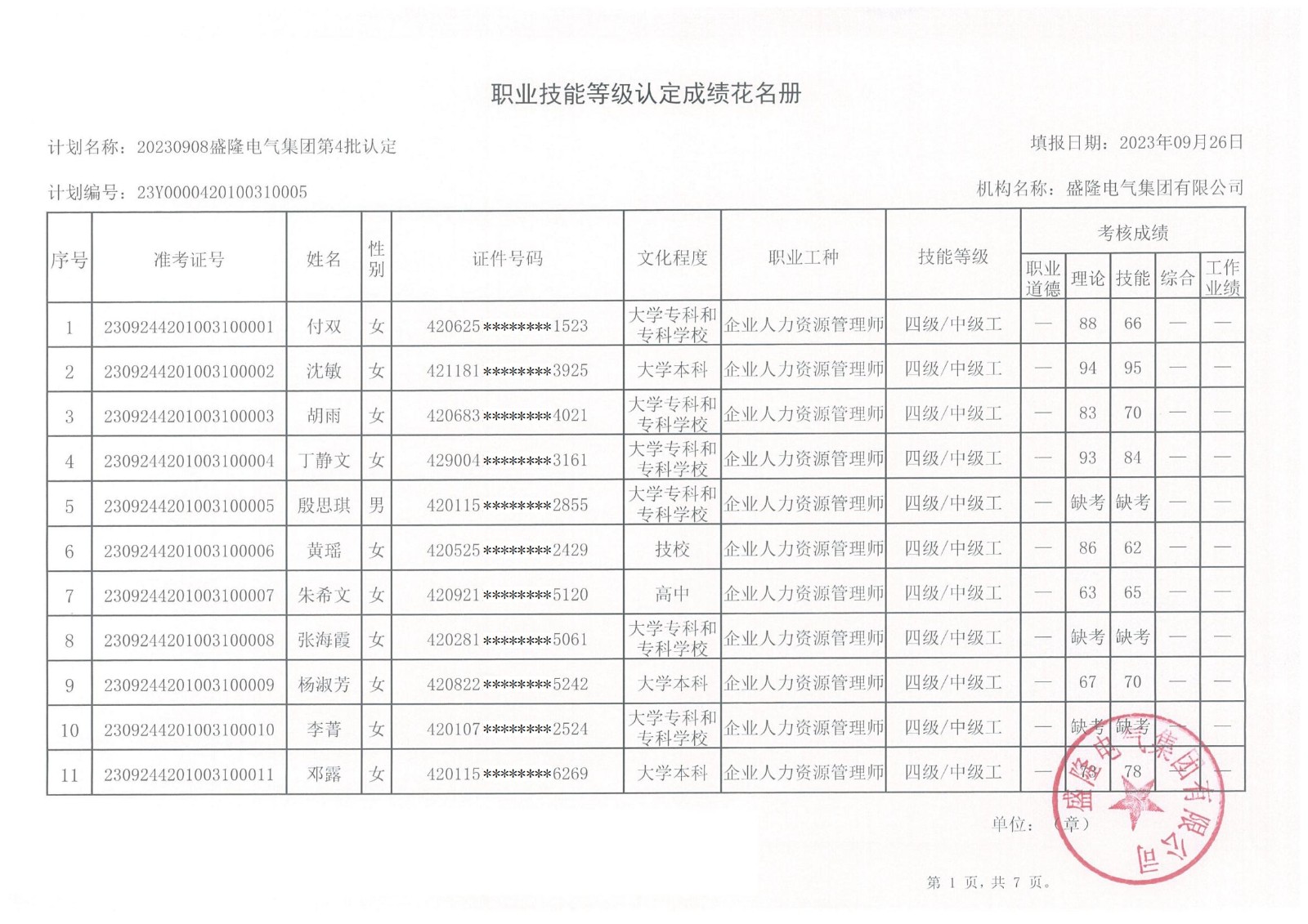 AC米兰中文官网2023年第六批职业技能等级认定成绩公示