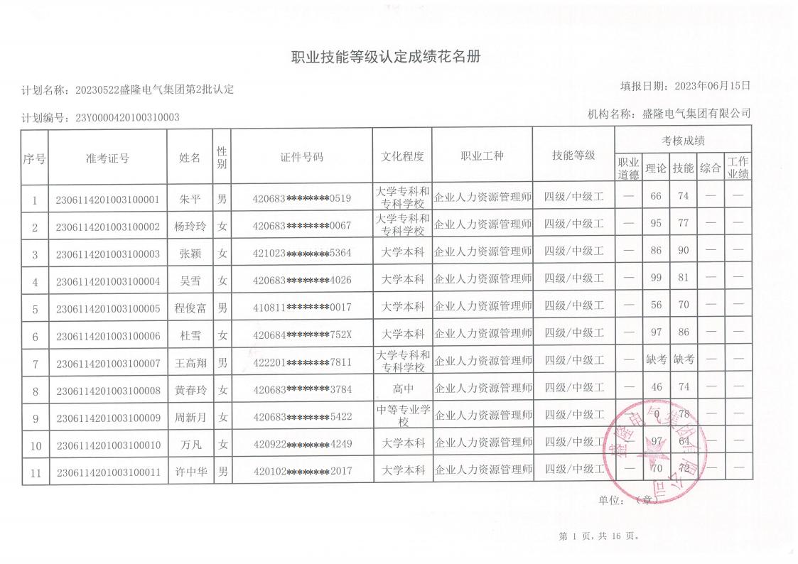 关于AC米兰中文官网第四批职业技能等级认定成绩的公示