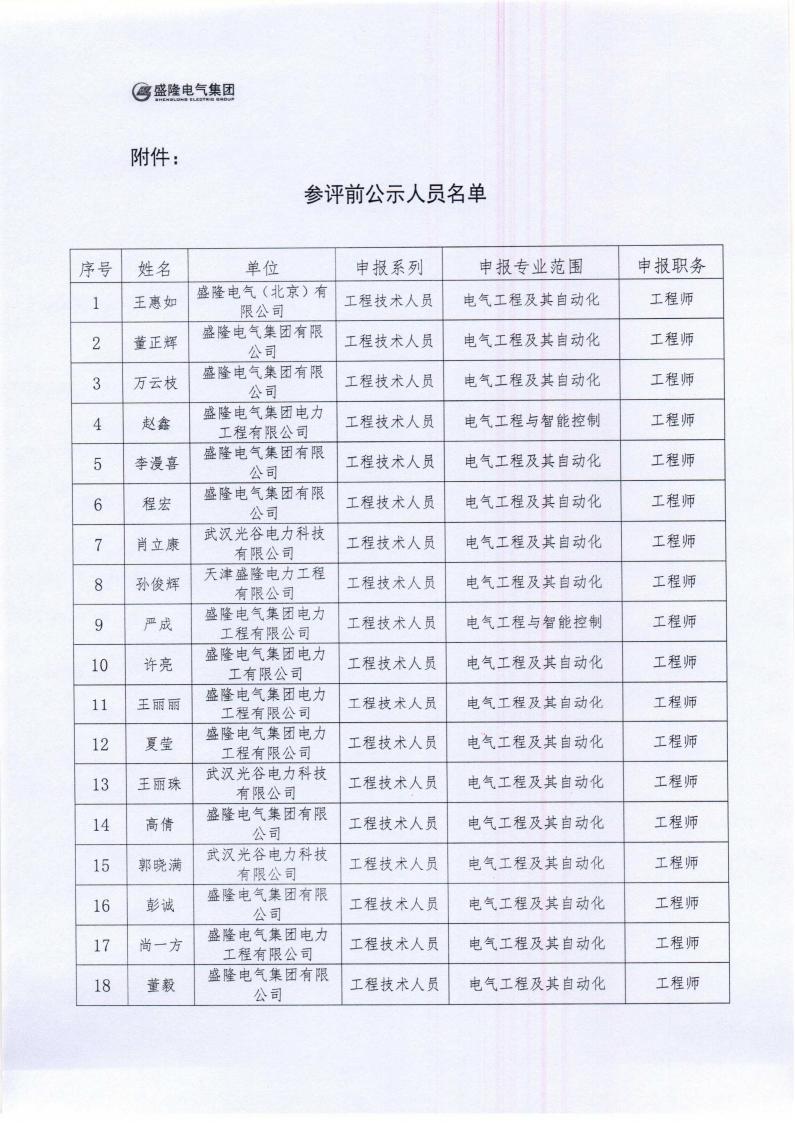 关于参加 2023 年度上半年AC米兰中文官网电气、机械专业技术职称评审人员的评前公示