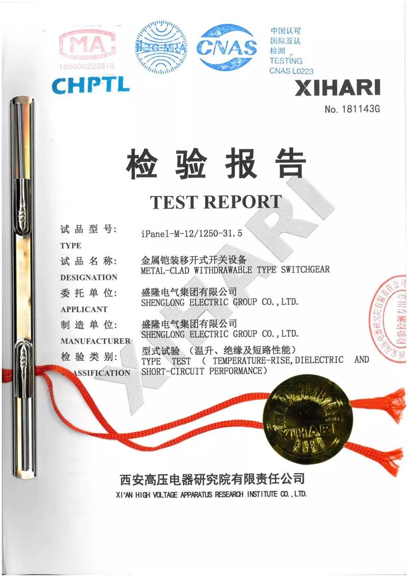 我公司获得智能中压品牌柜iPanel-M的型式实验报告